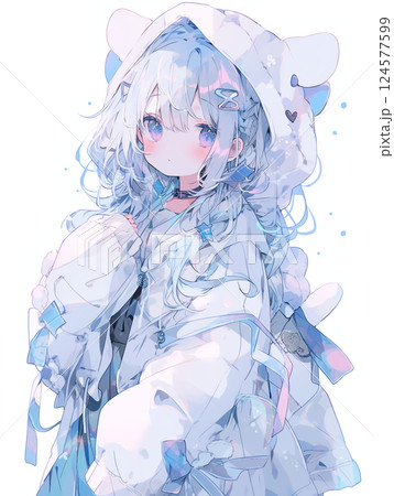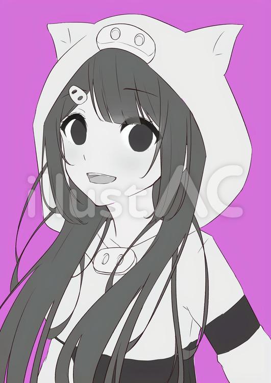 白いフードを被るピンク髪の少女のイラスト素材110968809- PIXTA。
