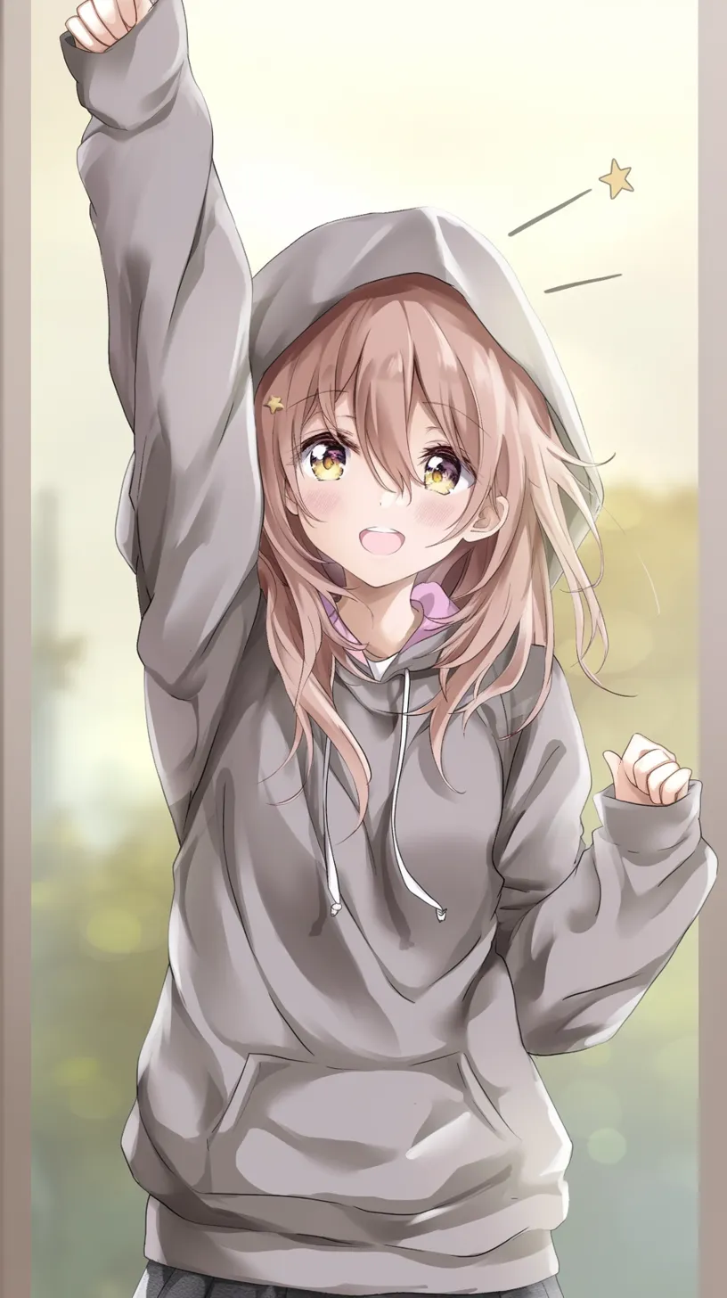 フードをかぶった元気少女 かわいいアニメ壁紙イラスト・フリー素材なら「シンテリ」。