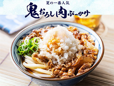 過酷な夏を乗り切る、丸亀製麺の“夏うどん”シリーズ 歴代冷やしうどん 人気NO1メニュー!シャキシャキ食感がアップして、大満足の食べ応えに進化!『鬼おろし肉ぶっかけうどん』が今年も登場!株式会社丸亀 製麺のプレスリリース。