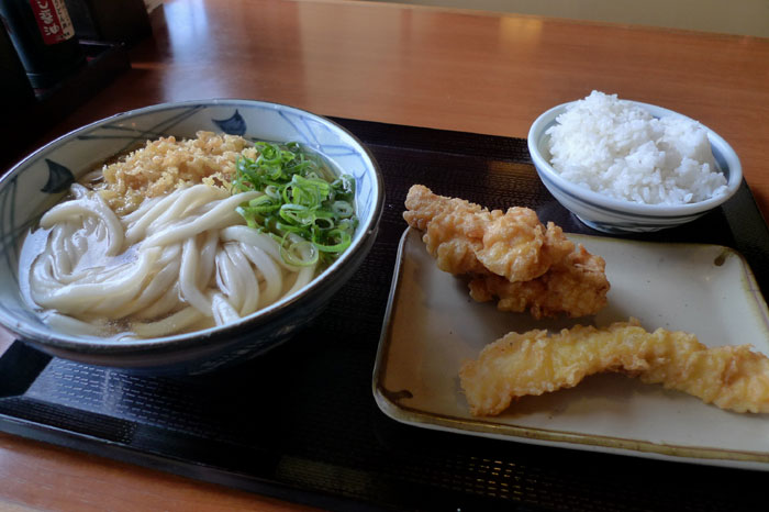 丸亀製麺、冷かけうどん、ちくわ天。 : 東山水上行。