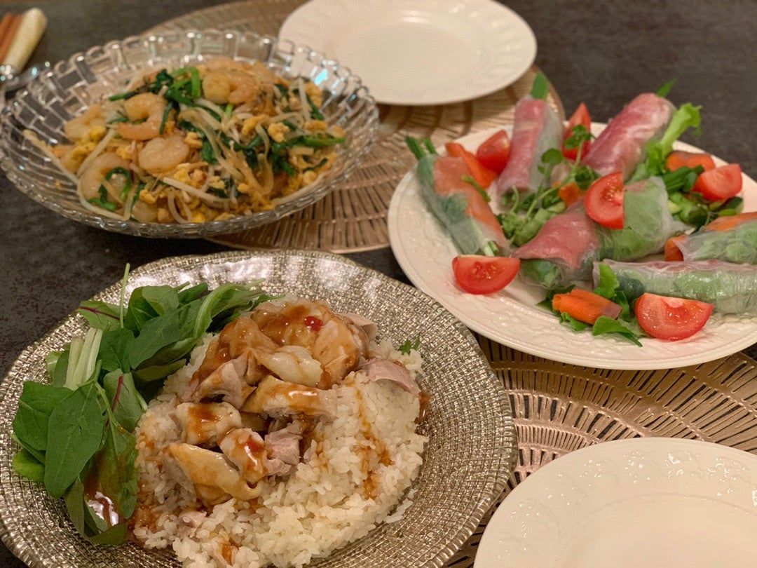 作りすぎて食べきれなかった!!カオマンガイとパッタイ、生春巻きでアジアンナイトクラシル。