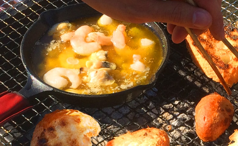 アヒージョをバーベキューのひと品に追加 - 野外道具屋ドットコム。