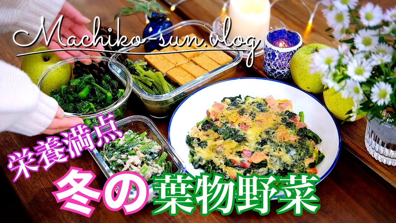 作り置きレシピ 冬の葉物野菜旬の時期に食べたい野菜の副菜小松菜・春菊・ちぢみほうれん草・菜の花。