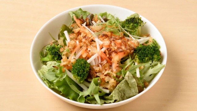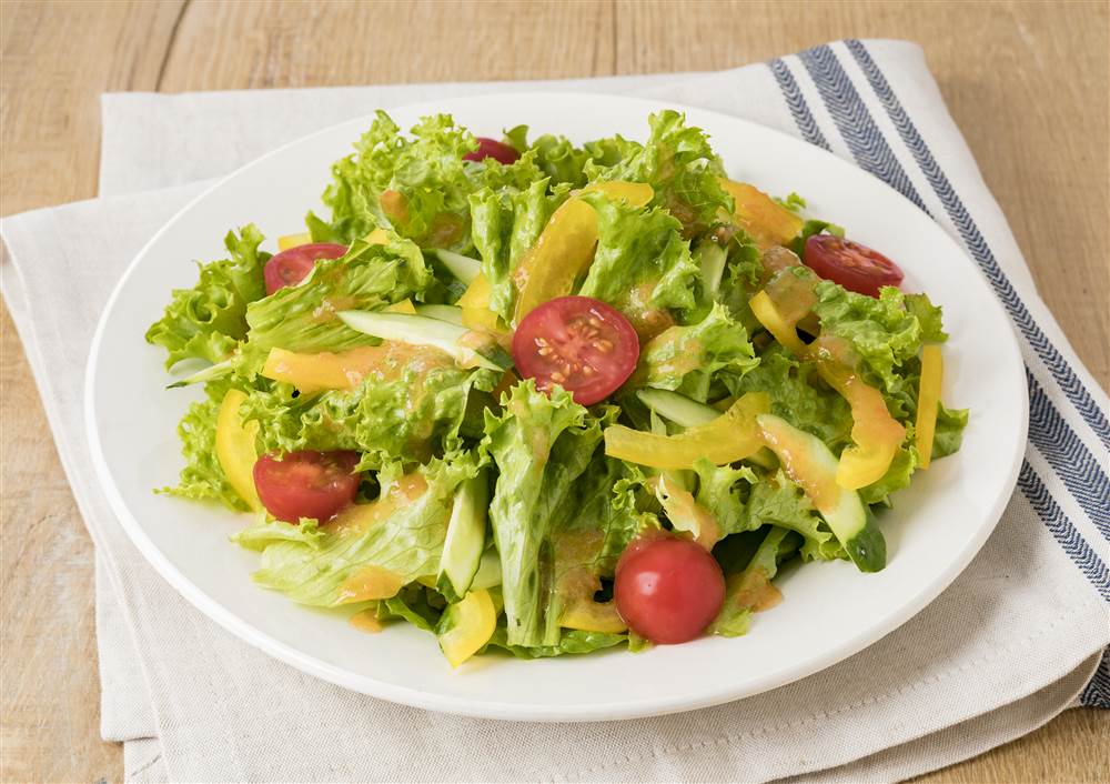 さっぱりドレッシングでいただくモリモリ野菜サラダ。