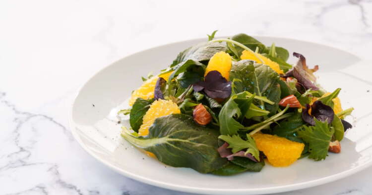 野菜を味わうレシピ有機ミックスリーフで作るオレンジサラダ有機野菜のぶどうの木。