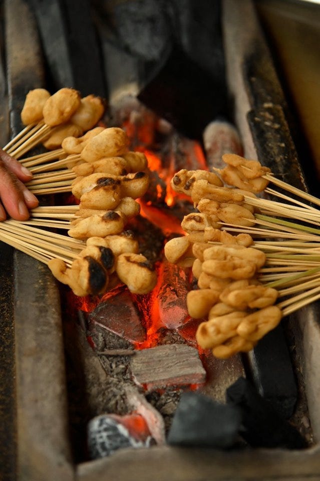 あぶり餅かざりや ,あぶり餅一和 , ✶, かざりやと一和食べ比べの焼いてるとこver.🍡, ✶, ✶,あぶり餅かざりや一文字屋和輔今宮神社京都。