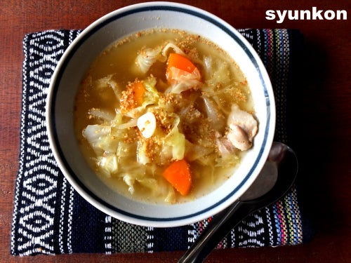 がん予防に。簡単!たっぷりキャベツのごま味噌ガーリックスープ-気楽においしく、病気の予防レシピ-syunkonからだに優しいごはん 山本 ゆりさんコラム- 第1回保険市場。