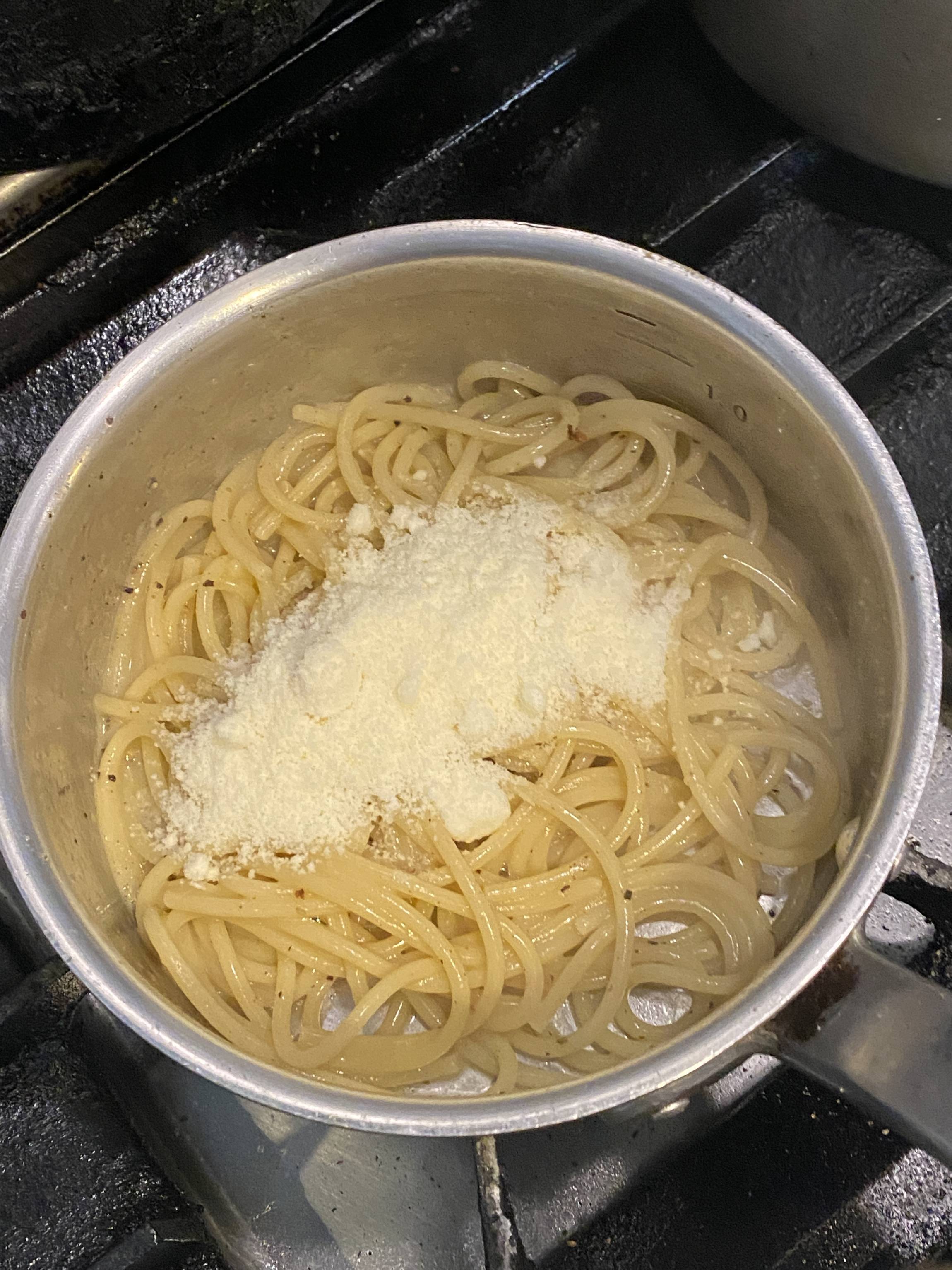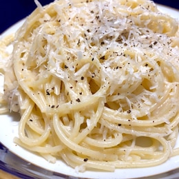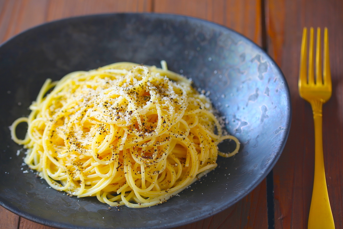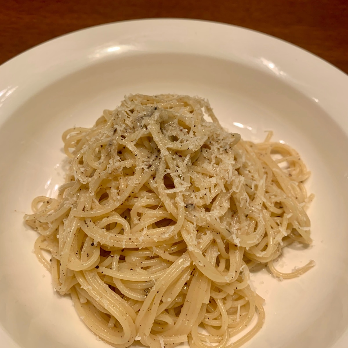 ペコリーノチーズと黒胡椒のスパゲティ-カチョエペペ-, 『cacio epepe』とはローマ発祥のパスタ料理🍝cacioは「チーズ」、pepeは「胡椒」を意味します。,伝統的なレシピでは、ローマのあるラツィオ州で造られる羊乳チーズ「ペコリーノロマーノ」を使用します。,このパスタ、「これで充分美味しいでしょ?」と言わんばかりにシンプル。チーズと黒胡椒をパスタにからめただけという潔さがいかにもイ。