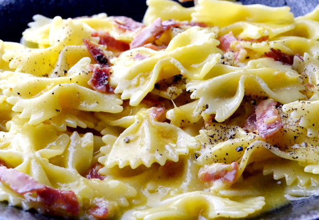 本格カルボナーラ ショートパスタのリガトーニでカルボナーラ!パンツェッタとペコリーノロマーノで本場ローマの味を手作りで堪能! Rigatonialla carbonara。