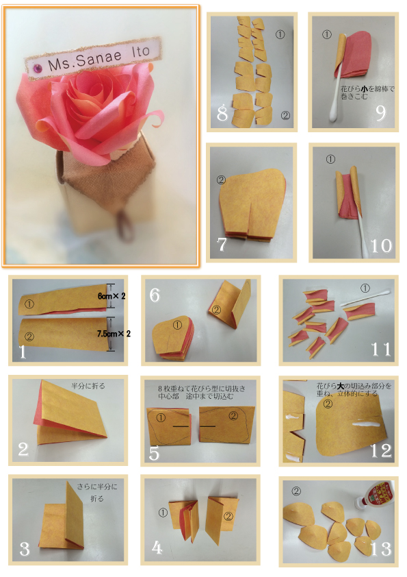 くるくる巻くだけ♪バラの花束3'412 ざんしじゆうに の遊び方 その43'412 ざんしじゆうに印刷残紙専門店。