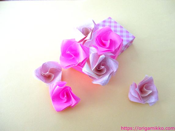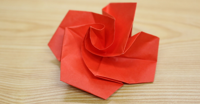 折り紙のバラの折り方は簡単!1枚で作る折り方 完成10分。