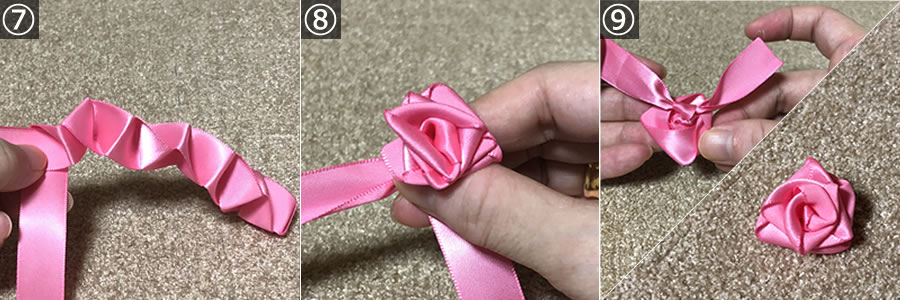 巻きバラの作り方ココリボンヘアゴム・ヘアアクセサリー・リボンの作り方。