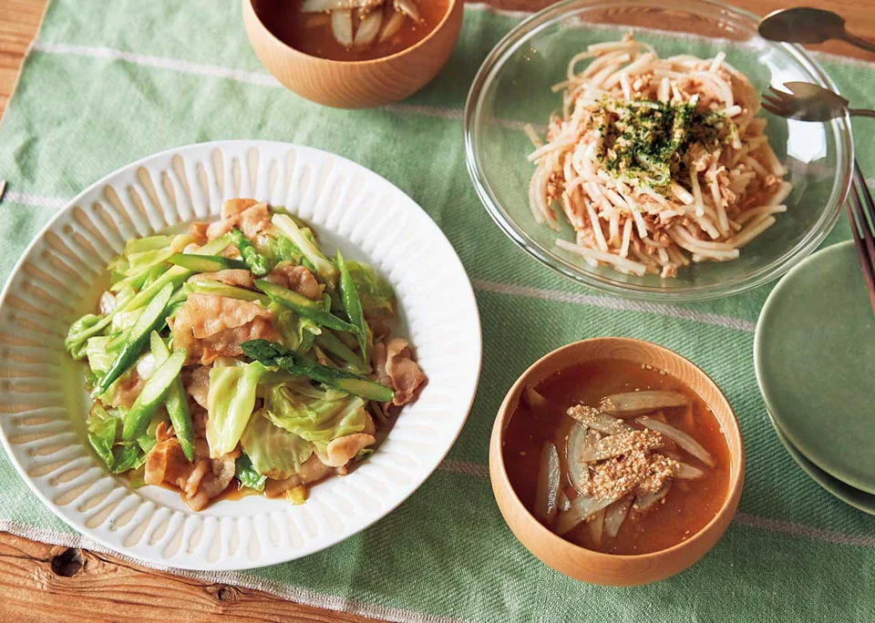 土井善晴の和食アプリ旬のレシピ①さつま汁 ②あじの干物ご飯 ③アスパラガスの直がつお ④なめたけパスタ ⑤豚肉とキャベツのからしあえーーーーーーーーーーーーーーーー レシピの詳細はアプリから! つくったお料理は土井善晴の和食 でご投稿お待ちしてます。