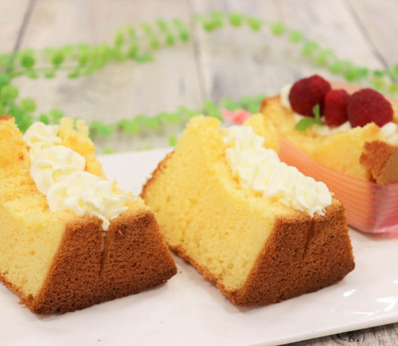 シフォンケーキ風①マスカルポーネクリーム添えお手軽アレンジレシピ 株式会社コモ。