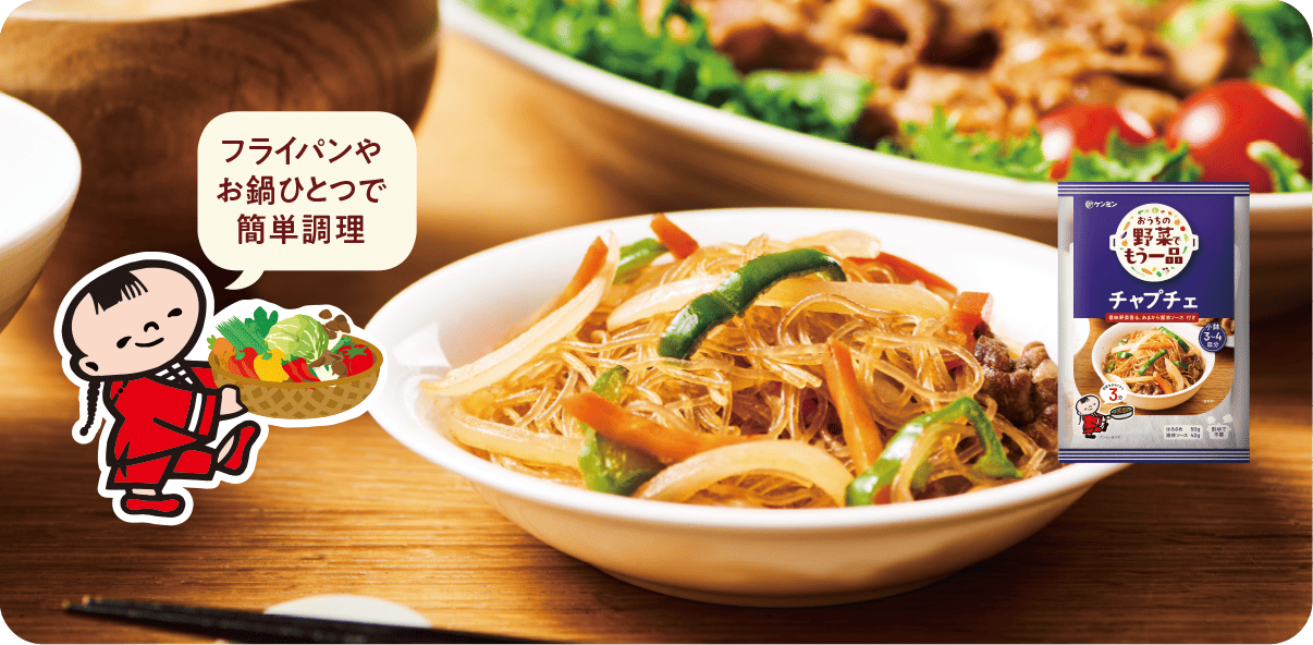 おうちの野菜でもう一品 チャプチェ 2025年9月新商品ビーフンのケンミン食品。