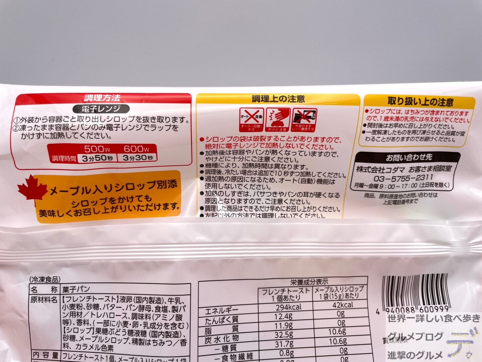 冷凍食品・しっとり染み込んだフレンチトースト 株式会社コダマ の感想パン野ミミ子のスイーツメモリーズ。