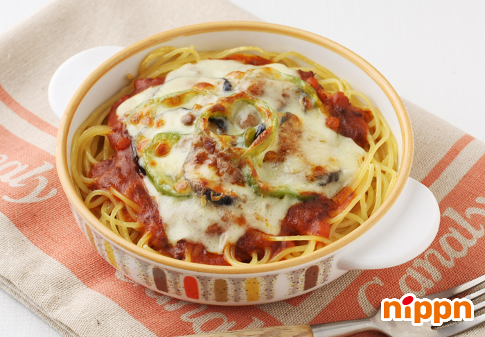 ケチャップで簡単!なすのミートソーススパゲッティ リコピンリッチトマトケチャップ使用。