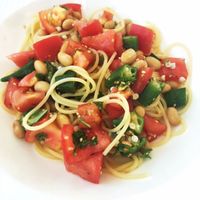 365日毎日パスタ137日目冷製たこのミントソースフェデリーニ。