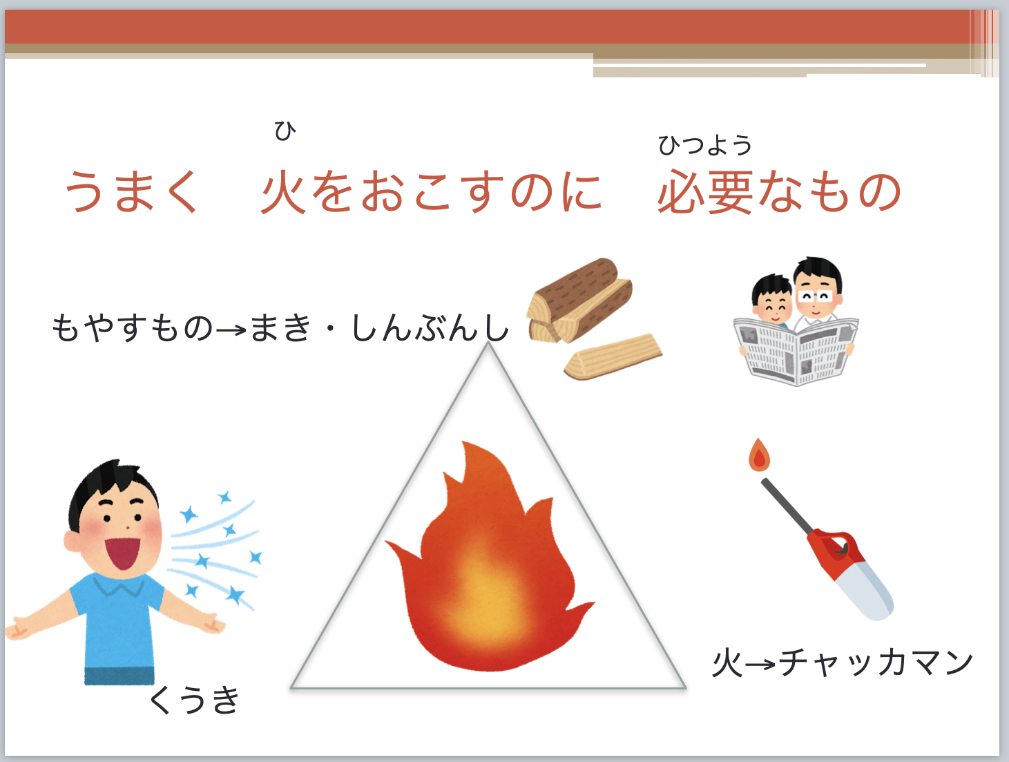 スライド教材:火の起こし方 めざせ完全燃焼 うまいカレーをつくるのだダッシュニンの特別支援教材室。