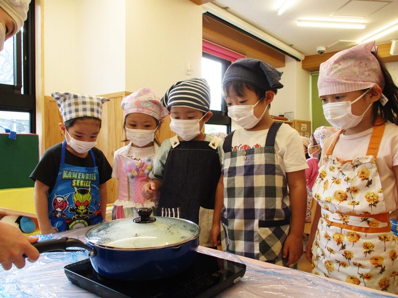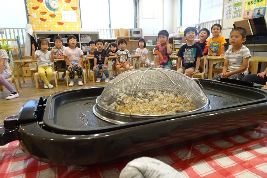 ポップコーンができるまでパンダ保育園看護師と保育士が常駐 静岡県 沼津市 保育園。