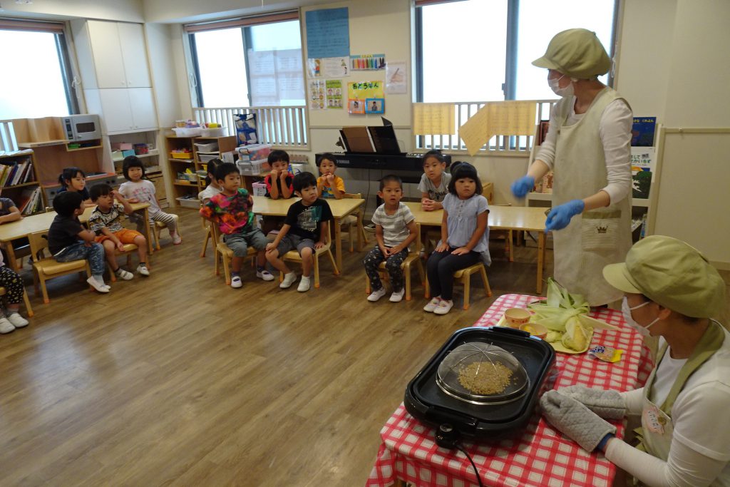 8月の食育活動~ポップコーン作り~アソシエブログ。