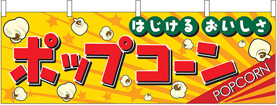 ポップコーン はじけるおいしさ 屋台のれん 販促横幕W1800×H600mm2865- 販促用品通販のサインモール。