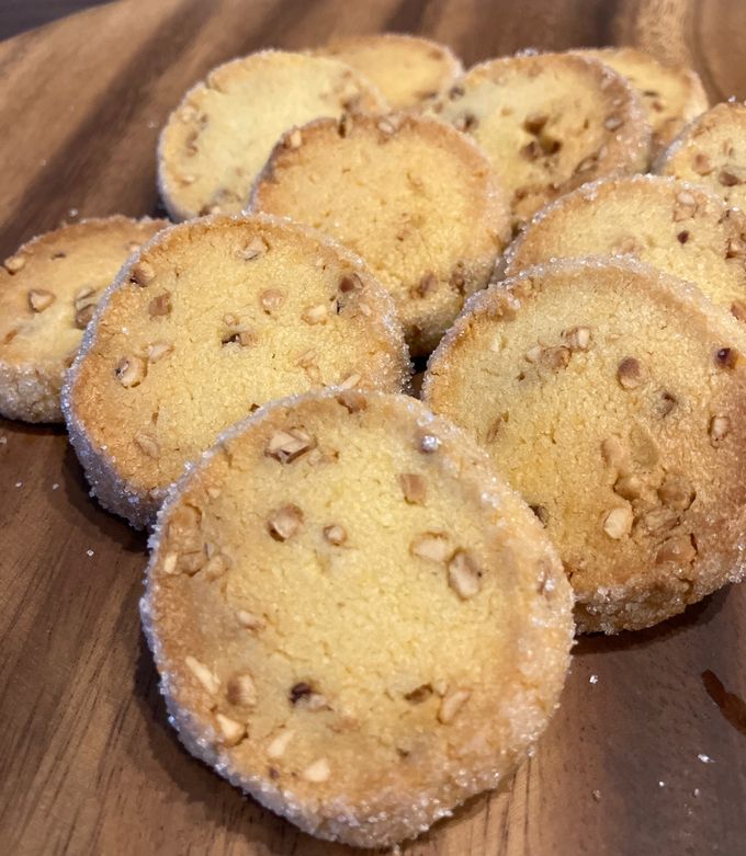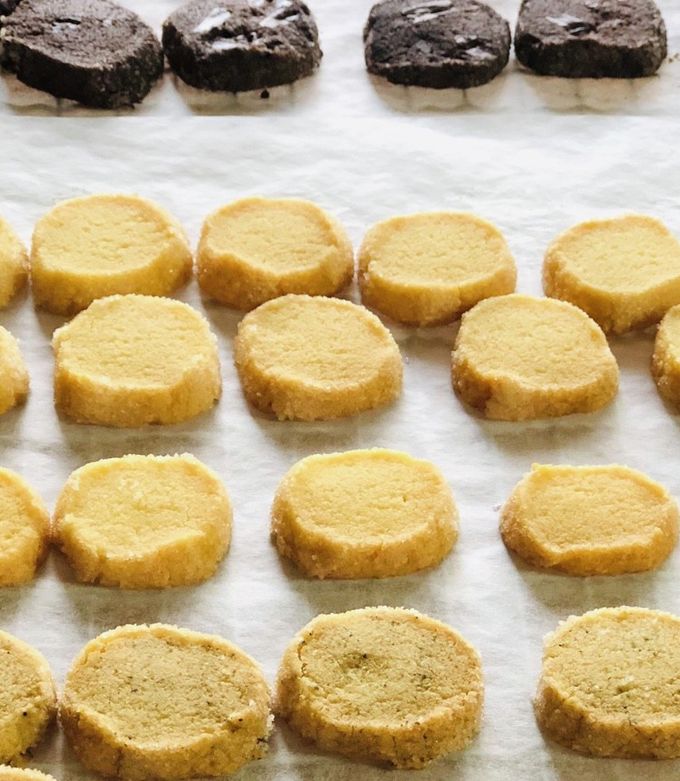 こんばんは🌝, さくほろっディアマンクッキーを, 作りました!, 動画内では「バニラ」のフレーバーの, レシピを紹介しています!,, ,プレーン , バター 30g, 塩 0.2g, 粉糖 17g, 卵 3g, 薄力粉 41g, アーモンドプードル4.5g, バニラペースト 1.5g, , その他のフレーバーは, YouTubeにのせてます☺️, ,。