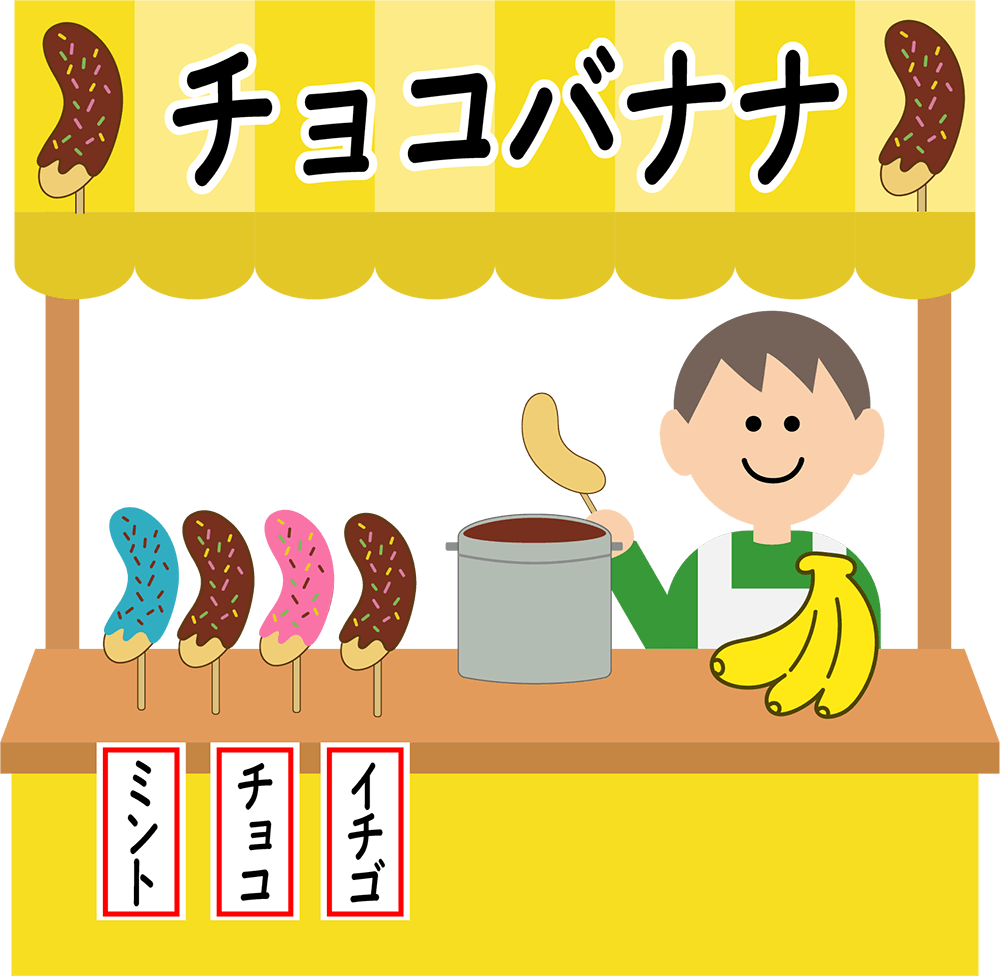 祭りの、チョコバナナの屋台の無料イラスト透過PNG・商用利用OKイラストセンタ。
