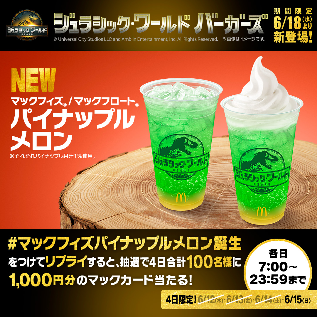 ✨夏のごほうびドリンク登場!✨ 🌴 マックフィズ® マックフロート® パイナップルメロン 🌴 💚6月18日 水 本日発売💛見てるだけで涼しくなれるグリーン×イエローのグラデーションが最高にフォトジェニック📸 爽やかなパイナップルの風味と、どこか懐かしいファンタ。