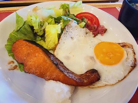 納豆・卵焼き・焼き鮭。THE和食のワンプレート朝ごはん。