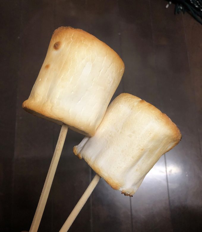 焼きマシュマロを引っ張ると・!Stretchy Roasted Marshmallow。