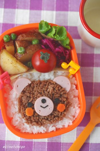 くまちゃんそぼろのお弁当 - わくわくキャラクター弁当。