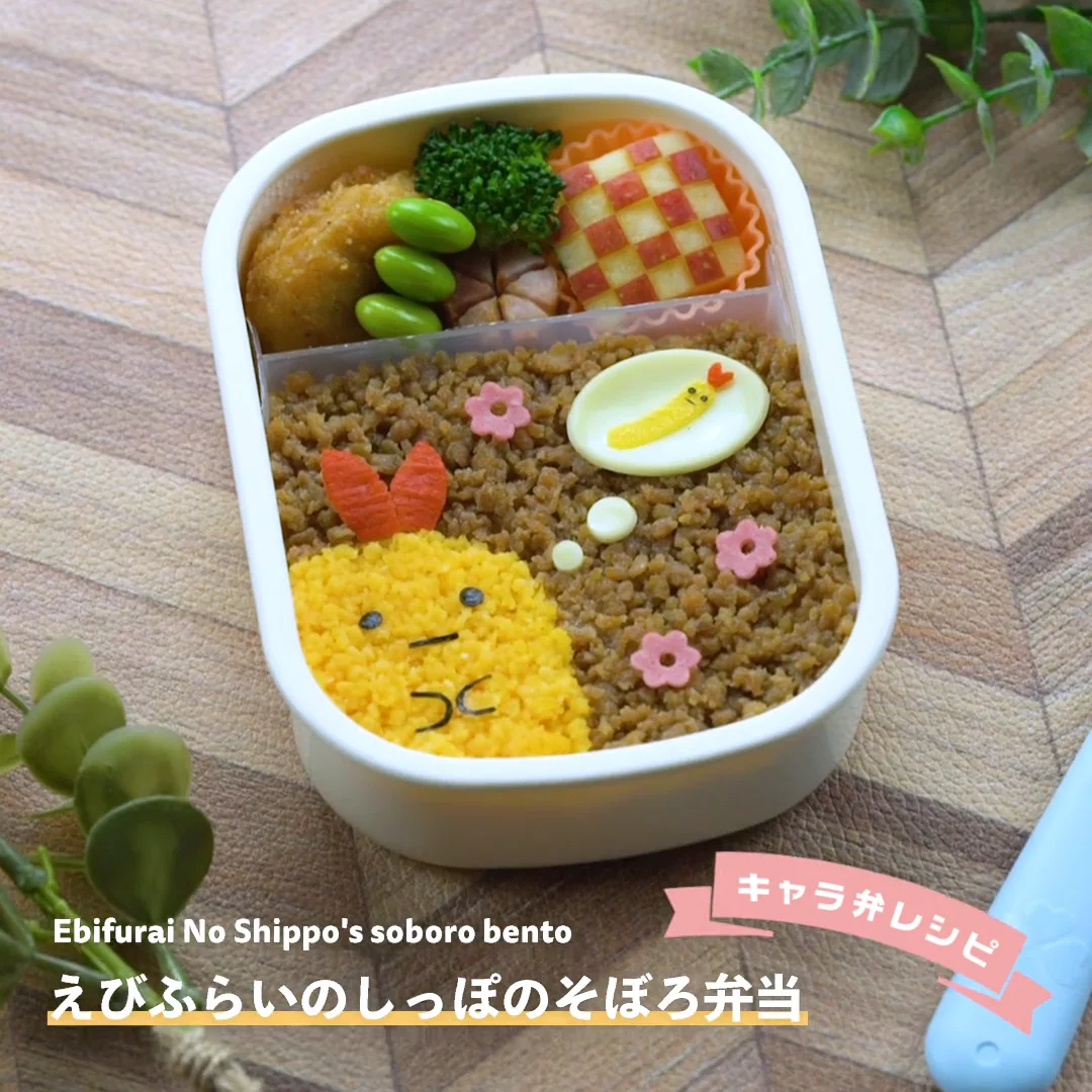 すみっコぐらしの人気キャラ「えびふらいのしっぽ」そぼろ弁当。