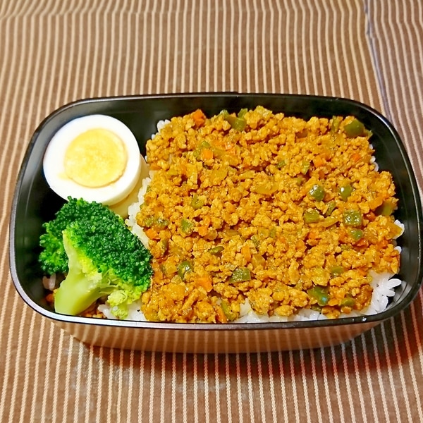 手作りキーマカレー×エビフライタルタルソース添え ランチボックス 860円ジョイズボックス - くるめし弁当。