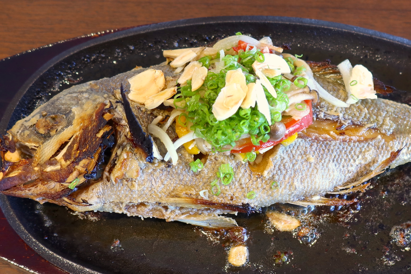 島ちょぼ沖縄でポピュラーな魚『グルクン』 バター焼きが最高 季節の添え野菜🫛グルクン沖縄今帰仁今帰仁夕食居酒屋okinawaInstagram。