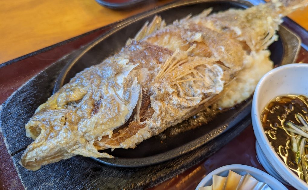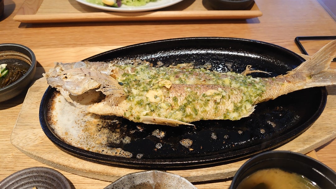 2024.10.28, 沖縄糸満, 何年か振りの糸満漁民食堂!, アカマチのバター焼きを注文。, これが沖縄の魚料理で1番美味しいと思う🤤,次はいつ来れるだろうか。
