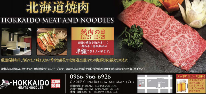 北海道焼肉 12月27日から3日間限定!マカティの焼肉店で一部和牛が半額キャンペーン♪ プライマーブログフィリピンプライマ。