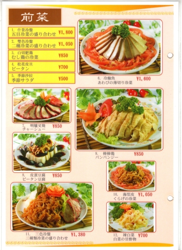 中式冷菜前菜 中国政府公認の特級厨師の腕を持つ料理人が振る舞う本格中華をお楽しみください。熏鸡东北拉皮麻辣ハチノス干し豆腐豚足アヒル など ガチ中華中国料理中華料理レストラン宴会冷菜。