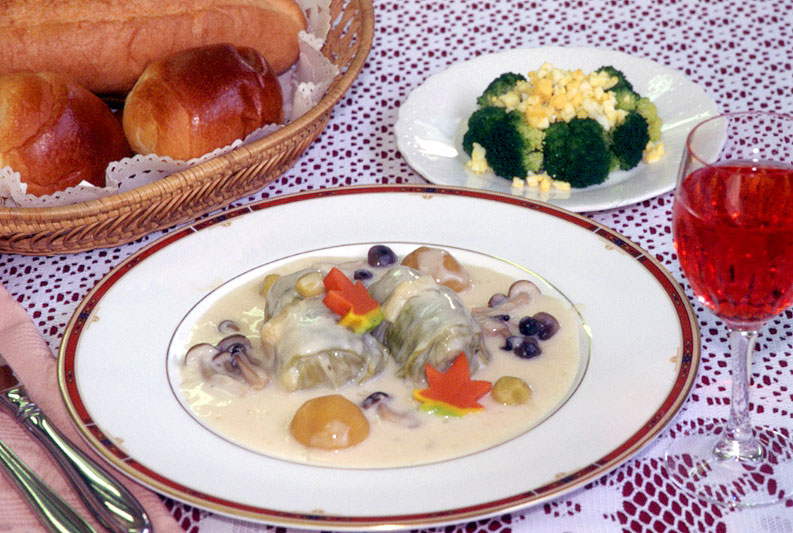きのこたっぷりロールキャベツ~和風クリームソース仕立て~日本特用林産振興会。