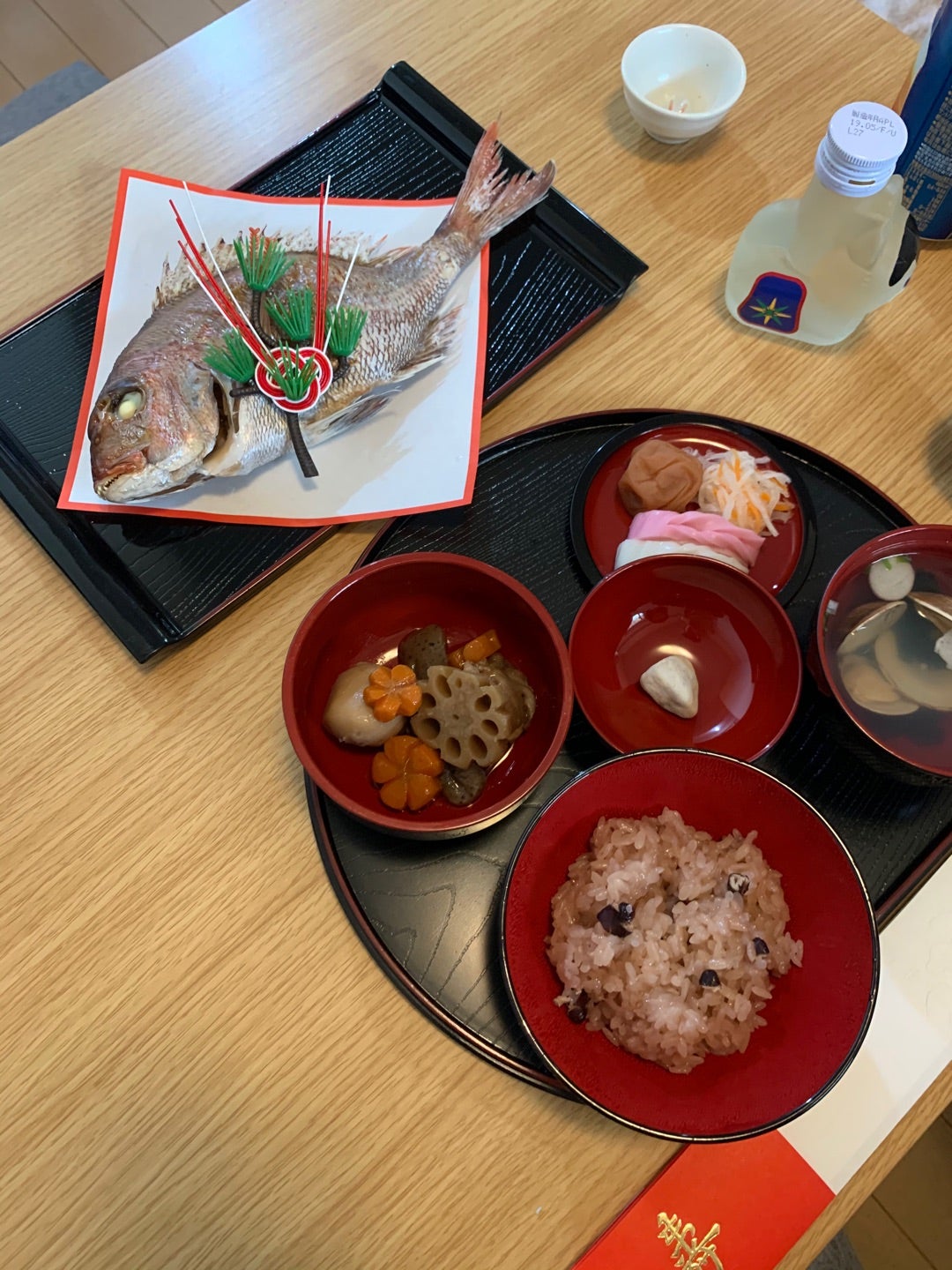 お菓子ばっかり作ってないでそろそろお食い初めしなければ。 これは2番目の時の。小さい鯛は地元のスーパーで予約したら焼いてくれた🐟助かる食器はほぼセリアお食い初め。