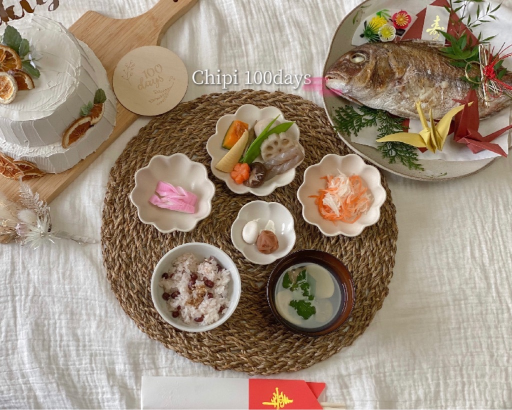 セリア お食い初めの食器を100均で代用!鯛やお料理はネット&クックパッドを活用! - tete。