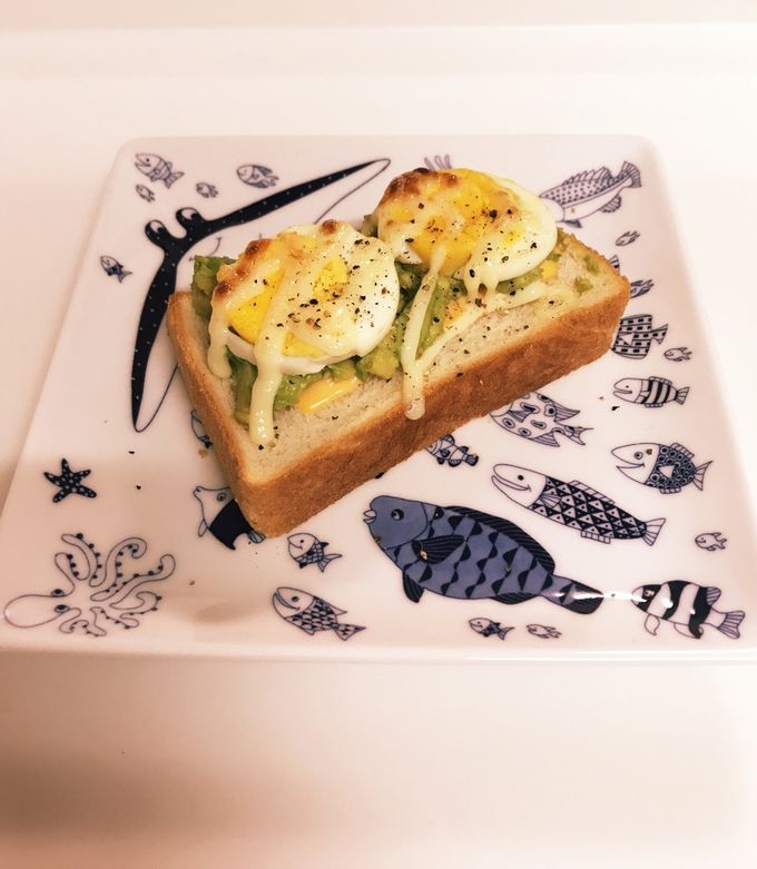 パン 太陽のアボたまマヨトースト❤朝が元気になるごパンアボカドトーストたまご。