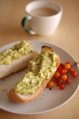 たまごを使わないマヨネーズタイプのアボカドトースト。