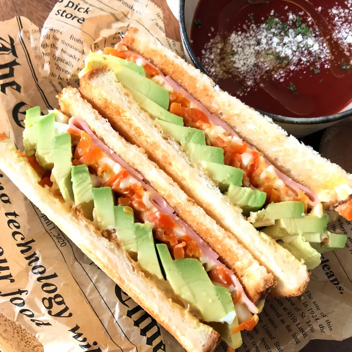 卵とにんじんとアボカドとハムのわんぱくサンドで朝ごはん-山本ゆり連載フーディストノート。