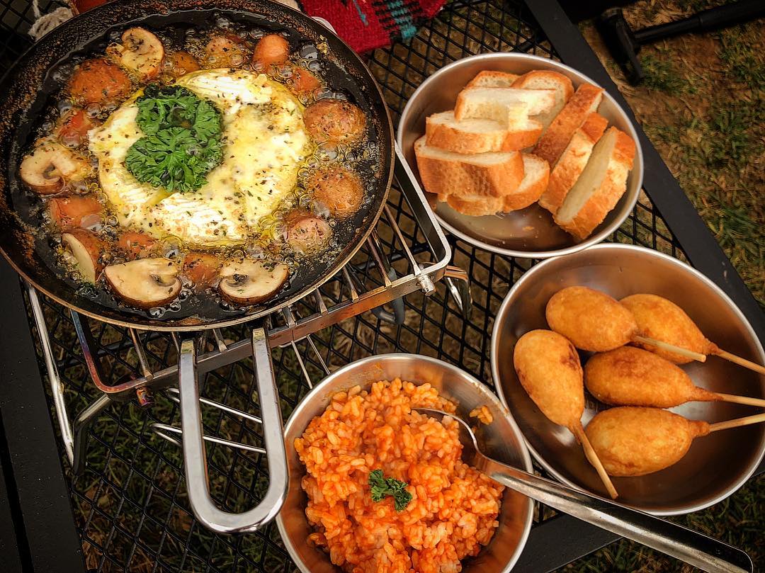 キャンプ飯 カマンベールチーズのアヒージョをスキレットで作ってみた!秋のきのこ盛り沢山で悪魔的に美味しすぎる簡単ニトスキレシピを紹介します あさごはんチャンネル。