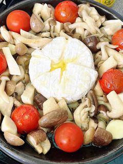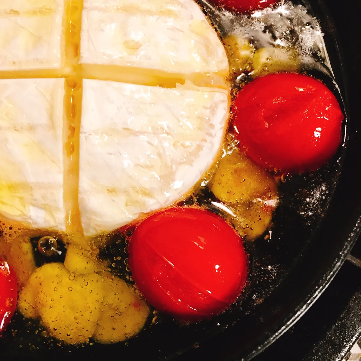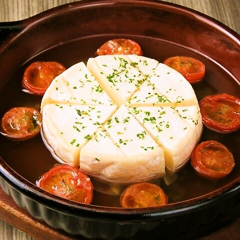 アツアツ 丸ごとカマンベールとトマトのアヒージョ。