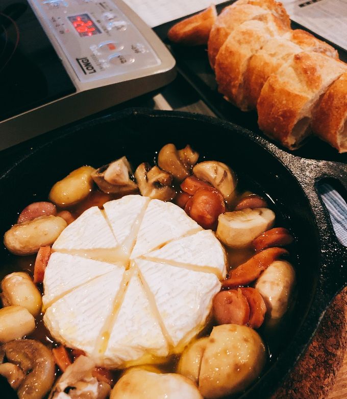 おうちでもアウトドア気分に!簡単で具材アレンジも楽しい、カマンベールアヒージョおうちごはん。