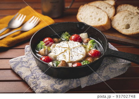 キャンプ飯 スキレットで作るカマンベールチーズのアヒージョの写真素材93702775- PIXTA。