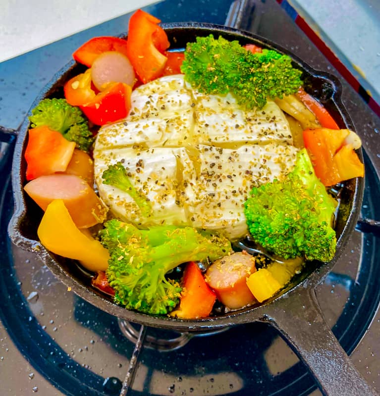 キャンプ飯 おつまみスキレットで作るカマンベールのアヒージョ スキレット料理レシピ。