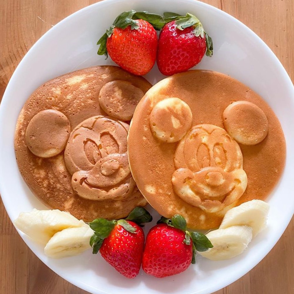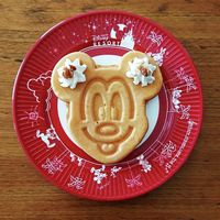 ミッキーワッフルクッキーパンケーキ🐭🥞 クッキー余っていたので動画も撮りました☺️見ての通り、本当に簡単です😌🥣 今回は焼き立てを食べましたが、前回作ったしっとりの方が個人的には好きでした☺️夜作っておいて朝食べるの、とってもおすすめです。
